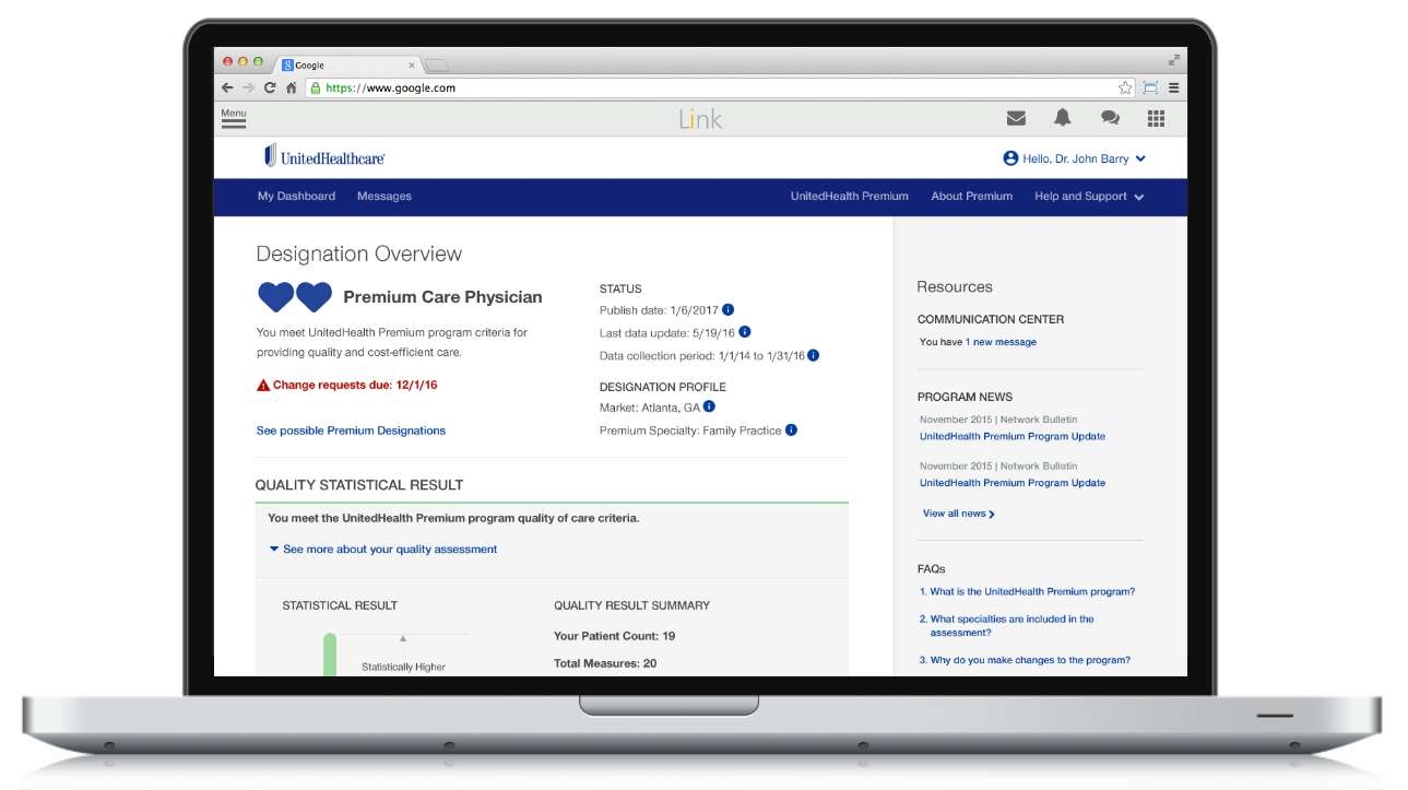Served as UX Lead on a 5 million dollar project that revolutionized the provider experience for UnitedHealth Premium, a program helping 300,000+ physicians improve their quality of care.