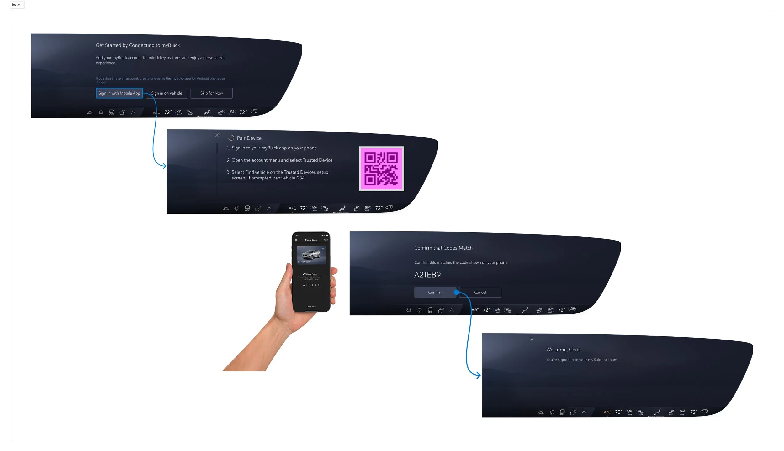 I partnered with the UX research team to design a user test to validate our initial concept for the flow. Initial testing found gaps in our instructions, both on the vehicle screen, but also on the mobile app experience.