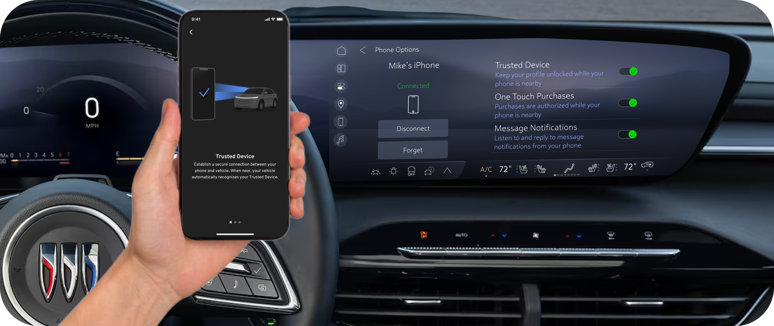 Allow customers to use their mobile device to instantly authorize sensitive transactions in the vehicle, avoiding manual password, pin code, and pattern entry.